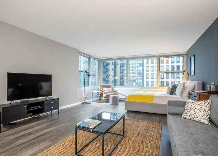 Lejlighed ligger i Chicago Loop kvarter i Chicago, 18 minutters kørsel fra Chicago Midway lufthavn. Gæster kan besøge Cloud Gate – The Bean inden for 1,1 km. Der er U.B. Dogs og Ajida, der serverer amerikanske retter, som kan findes inden for 5 minutters gang fra indkvarteringen.